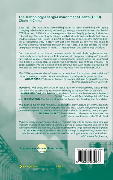 Since 1997, the AGS China cokemaking team has been examining the rapidly changing relationships among technology, energy, the environment, and health (TEEH) in one of China's most energy-intensive and highly polluting industries--cokemaking. The team has developed analytical tools and methods that can be used to examine TEEH issues in almost any industry in any country. Their findings tell a fascinating story--a story that not only teaches us how we can begin to analyze unfamiliar industries through the TEEH lens, but also reveals the often unexpected consequences of industrial management and technology decisions.