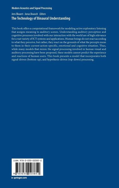 The current book concentrates on these cognitive functions. Instead of processing signals, processing symbols is now the predominant modeling task. Substantial contributions to the field draw upon the knowledge acquired by cognitive psychology. The keyword Binaural Understanding in the book title characterizes this shift.