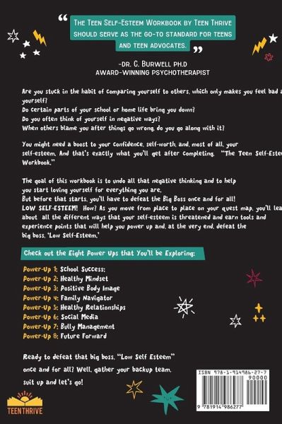Or are you stuck in the habit of comparing yourself to others, which only makes you feel bad about yourself? Do certain parts of your school or home life bring you down? Do you often think of yourself in negative ways? When others blame you after things go wrong, do you go along with it? You might need a boost to your confidence, self-worth, and, most of all, your self-esteem. And that's exactly what you'll get after completing "The Teen Self-Esteem Workbook" The goal of this workbook is to undo all that thinking and to help you start loving yourself for everything you are. That's what self-esteem is all about, loving yourself for who you are! You'll go on a heroic quest of self-discovery, unlocking 8 Power-Ups until you've reached the final destination: Confidence and Higher Self-Esteem. As you move from place to place on your quest map, you'll learn about all the different ways that your self-esteem is threatened and be given tools and experience points that will help you power up and, at the very end, defeat the big boss, 'Low Self-Esteem.' Check out the Eight Power Ups that You'll be Exploring: Power-Up 1: School Success: Learn how to navigate the pressures related to school and be in tune with how they make you feel. Learn how to deal with stressful encounters with teachers and other students so your self-esteem is not impacted. Power-Up 2: Healthy Mindset Learn what to do when you feel hurt, jealous, anxious, or when self-doubt comes creeping in. Learn how to develop a self-care plan that will stick, and that is perfect for you. Know when you need extra help from a trusted adult. Power-Up 3: Positive Body Image Learn about your opponent: low body image, and get tips for how to defeat it. Get your backup team ready for extra support, and then suit up! We'll give you practical tips for developing a positive body image and keeping it that way. Power-Up 4: Family Navigator Learn how your family relationships can have a huge impact on your self-esteem. And learn how to navigate tough topics and express yourself fully. Power-Up 5: Healthy Relationships Discover what you can do to have healthier relationships with others by setting boundaries, handling pressure, having the courage to be your authentic self, and more! Power-Up 6: Social Media When it comes to social media, you'll need to wear a suit of armor to properly protect your confidence, self-worth, and the way you think of yourself. Power-Up 7: Bully Management Bullying is on the rise. As such, you'll need the proper tools to evade their harmful blows on your self-esteem. Learn how to advocate for yourself, pump yourself up with positive self-talk, and return harsh words for kindness. Power-Up 8: Future Forward You've got a bright future ahead of you, especially after you've gained all the tools to defeat the big boss, Low Self-Esteem. Make solid plans and learn how to be comfortable with the unknown. Ready to defeat that big boss "Low Self Esteem" once and for all? Well, gather your backup team, suit up, and let's go! Pick up your copy today to start this ultimate quest!