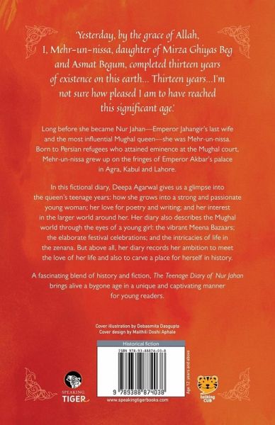 'Yesterday, by the grace of Allah, I, Mehr-un-nissa, daughter of Mirza Ghiyas Beg and Asmat Begum, completed thirteen years of existence on this earth… Thirteen years…I'm not sure how pleased I am to have reached this significant age.' Long before she became Nur Jahan-Emperor Jahangir's last wife and the most influential Mughal queen-she was Mehr-un-nissa. Born to Persian refugees who attained eminence at the Mughal court, Mehr-un-nissa grew up on the fringes of Emperor Akbar's court in Agra, Kabul and Lahore. In this fictional diary, Deepa Agarwal gives us a glimpse into the queen's teenage years: how she grows into a strong and passionate young woman; her love for poetry and writing; and her interest in the larger world around her. Her diary also describes the Mughal world through the eyes of a young girl: the vibrant Meena Bazaars; the elaborate festival celebrations; and the intricacies of life in the zenana. But above all, her diary records her ambition to meet the love of her life and also to carve a place for herself in history. A fascinating blend of history and fiction, The Teenage Diary of Nur Jahan brings alive a bygone age in a unique and captivating manner for young readers.