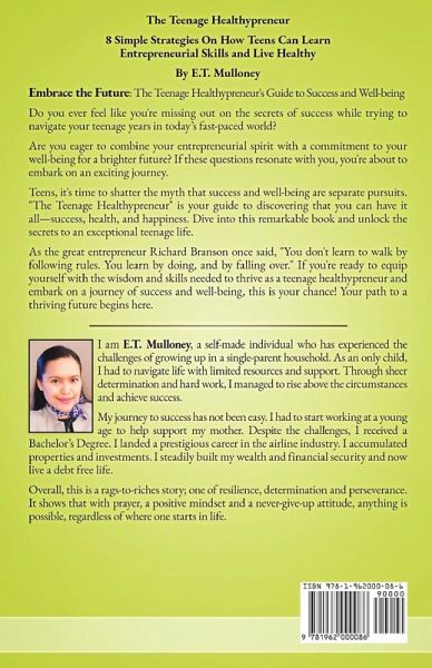 Do you ever feel like you're missing out on the secrets of success while trying to navigate your teenage years in today's fast-paced world? Are you eager to combine your entrepreneurial spirit with a commitment to your well-being for a brighter future? If these questions resonate with you, you're about to embark on an exciting journey. Teens, it's time to shatter the myth that success and well-being are separate pursuits. "The Teenage Healthypreneur" is your guide to discovering that you can have it all-success, health, and happiness. Dive into this remarkable book and unlock the secrets to an exceptional teenage life. Let's dispel the misconception that success is solely about luck or privilege. In reality, success is the result of dedication, discipline, and smart choices made over time. Within these pages, we explore proactive strategies that start with the basics of balancing ambition and well-being and progress to the exciting world of healthypreneurship:8 Simple Strategies: Transform into a healthypreneur, even if you're just starting your journey. Balancing Act: Discover how to balance your entrepreneurial ambitions with a healthy lifestyle. Unlocking Your Potential: Learn how to create opportunities for yourself and become the architect of your future. A Positive Mindset: Break free from limiting beliefs and unlock your full potential. Healthy Habits: A step-by-step guide to building a foundation for lifelong well-being, even if you've struggled with health goals in the past. As the great entrepreneur Richard Branson once said, "You don't learn to walk by following rules. You learn by doing, and by falling over."