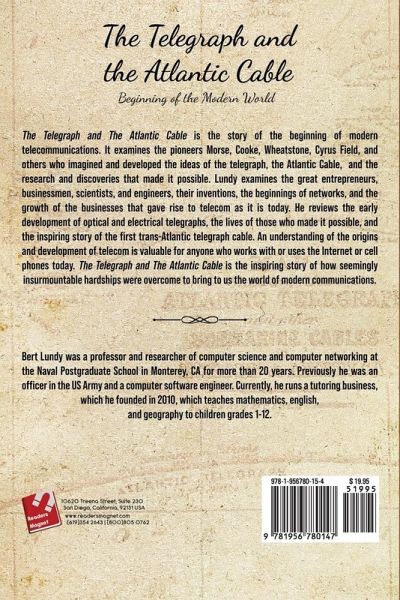 The Telegraph and The Atlantic Cable is the story of the beginning of modern telecommunications. It examines the pioneers Morse, Cooke, heatstone, Cyrus Field and others who imagined and developed the ideas of the telegraph, the Atlantic Cable, and the research and discoveries that made it possible. Lundy examines the great entrepreneurs, businessmen, scientists and engineers, their inventions, the beginnings of networks, and the growth of the businesses that gave rise to telecom as it is today. He reviews the early development of optical and electrical telegraphs, the lives of those who made it possible, and the inspiring story of the first trans-Atlantic telegraph cable. An understanding of the origins and development of telecom is valuable for anyone who works with or uses the Internet or cell phones today. The Telegraph and The Atlantic Cable is the inspiring story of how seemingly insurmountable hardships were overcome to bring to us the world of modern communications.