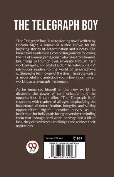"The Telegraph Boy" is a captivating novel written by Horatio Alger, a renowned author known for his inspiring stories of determination and success. The book takes readers on a compelling journey following the life of a young protagonist who rises from humble beginnings to triumph over adversity through hard work, integrity, and a bit of luck. "The Telegraph Boy" introduces readers to the world of telegraphy¿a cutting-edge technology of the time. The protagonist, a resourceful and ambitious young boy, finds himself working as a telegraph messenger. As he immerses himself in this new world, he discovers the power of communication and the opportunities it can offer. "The Telegraph Boy" resonates with readers of all ages, emphasizing the importance of determination, integrity, and seizing opportunities. Alger's narrative serves as an inspiration for individuals facing adversity, reminding them that through hard work, honesty, and a bit of luck, they can overcome challenges and achieve their aspirations.