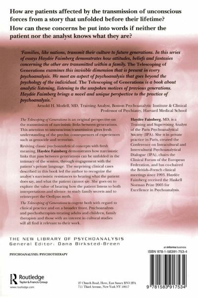 Winner of the 2013 Sigourney Award! The Telescoping of Generations is an original perspective on the nature of narcissism, exploring how the traumatic experiences of previous generations influence the mechanisms involved in the transmission of narcissistic links between