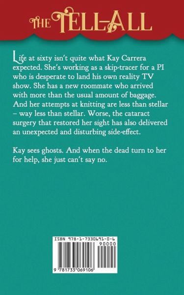 The town party planner has a secret, and it'll be the death of her. Good thing amateur sleuth, Kay Carrera is on the case! Life at sixty isn't quite what Kay Carrera expected. She's working as a skip-tracer for a PI who is desperate to land his own reality TV show. She has a new roommate who arrived with more than the usual amount of baggage. And her attempts at knitting are less than stellar - way less than stellar. Worse, the cataract surgery that restored her sight has also delivered an unexpected and disturbing side-effect. Kay sees ghosts. And when the dead turn to her for help, she just can't say no.