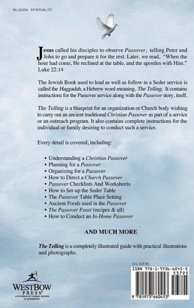 Jesus called his disciples to observe Passover, telling Peter and John to go and prepare it for the rest. "When the hour had come, He reclined at the table, and the apostles with him." Luke 22:14 The Jewish Book used to lead as well as follow in a Seder service is called the Haggadah, a Hebrew word meaning, The Telling. It contains instructions for the Passover service along with the Passover story, itself. The Telling is a blueprint for an organization or Church body wishing to carry out an ancient traditional Christian Passover as part of a service or an outreach program. It also contains complete instructions for the individual or family desiring to conduct such a service. Every detail is covered, including: *Understanding a Christian Passover *Planning for a Passover *Organizing for a Passover *How to Direct a Church Passover *Passover Checklists and Worksheets *How to Set-up the Seder Table *The Passover Table Place Setting *Ancient Foods used in the Passover *The Passover Feast (recipes & all) *How to Conduct an In-Home Passover AND MUCH MORE The Telling is a completely illustrated guide with practical illustrations and photographs.