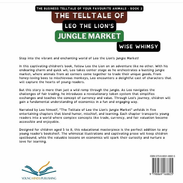 Step into the vibrant and enchanting world of Leo the Lion's Jungle Market! In this captivating children's book, follow Leo the Lion on an adventure like no other. With his endearing charm and quick wit, Leo takes center stage as he orchestrates a bustling jungle market, where animals from all corners come together to trade their unique goods. From honey-loving bees to mischievous monkeys, Leo encounters a delightful cast of characters that will capture the hearts of young readers. But this story is more than just a wild romp through the jungle. As Leo navigates the challenges of fair trading, he introduces a revolutionary token system that simplifies exchanges and teaches the concept of currency and value. Through Leo's journey, children will gain a fundamental understanding of economics in a fun and engaging way. Narrated by Leo himself, "The Telltale of Leo the Lion's Jungle Market" unfolds in five entertaining chapters that blend humor, mischief, and learning. Each chapter transports young readers into a world where complex concepts like trade, currency, and fair valuation become accessible and enjoyable. Designed for children aged 5 to 8, this educational masterpiece is the perfect addition to any young reader's bookshelf. The whimsical illustrations and captivating prose will keep children spellbound, while the valuable lessons on economics will spark their curiosity and nurture a love for learning. "The Telltale of Leo the Lion's Jungle Market" is not just a story; it's an adventure into a world of discovery. Join Leo on this unforgettable journey and watch as your child's imagination takes flight. Purchase your copy today and unlock the magic of economics in a way that will leave both children and adults enchanted.