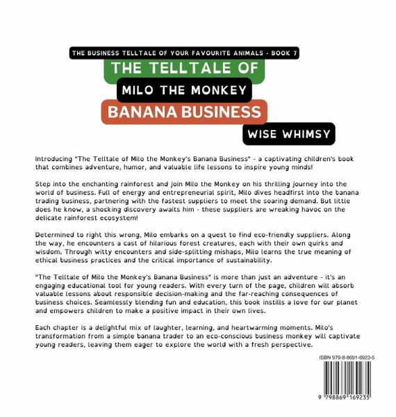 Introducing "The Telltale of Milo the Monkey's Banana Business" - a captivating children's book that combines adventure, humor, and valuable life lessons to inspire young minds! Step into the enchanting rainforest and join Milo the Monkey on his thrilling journey into the world of business. Full of energy and entrepreneurial spirit, Milo dives headfirst into the banana trading business, partnering with the fastest suppliers to meet the soaring demand. But little does he know, a shocking discovery awaits him - these suppliers are wreaking havoc on the delicate rainforest ecosystem! Determined to right this wrong, Milo embarks on a quest to find eco-friendly suppliers. Along the way, he encounters a cast of hilarious forest creatures, each with their own quirks and wisdom. Through witty encounters and side-splitting mishaps, Milo learns the true meaning of ethical business practices and the critical importance of sustainability. "The Telltale of Milo the Monkey's Banana Business" is more than just an adventure - it's an engaging educational tool for young readers. With every turn of the page, children will absorb valuable lessons about responsible decision-making and the far-reaching consequences of business choices. Seamlessly blending fun and education, this book instills a love for our planet and empowers children to make a positive impact in their own lives. Each chapter is a delightful mix of laughter, learning, and heartwarming moments. Milo's transformation from a simple banana trader to an eco-conscious business monkey will captivate young readers, leaving them eager to explore the world with a fresh perspective. With its vibrant illustrations and engaging storytelling, "The Telltale of Milo the Monkey's Banana Business" is a must-have addition to any child's bookshelf. This enchanting tale will not only entertain, but also inspire children to become thoughtful, responsible, and environmentally conscious individuals. Don't miss out on this extraordinary journey that will leave children eagerly turning the pages and begging for more. Join Milo on his epic adventure today and nurture a generation of young minds who are ready to change the world, one responsible choice at a time!