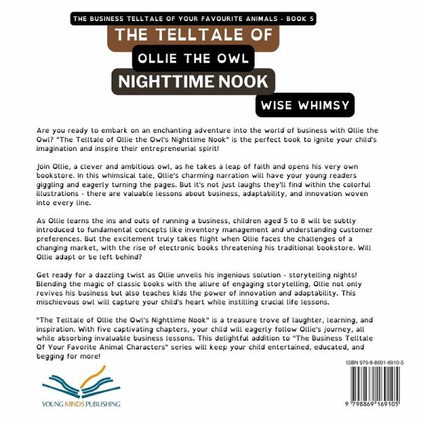Are you ready to embark on an enchanting adventure into the world of business with Ollie the Owl? "The Telltale of Ollie the Owl's Nighttime Nook" is the perfect book to ignite your child's imagination and inspire their entrepreneurial spirit! Join Ollie, a clever and ambitious owl, as he takes a leap of faith and opens his very own bookstore. In this whimsical tale, Ollie's charming narration will have your young readers giggling and eagerly turning the pages. But it's not just laughs they'll find within the colorful illustrations - there are valuable lessons about business, adaptability, and innovation woven into every line. As Ollie learns the ins and outs of running a business, children aged 5 to 8 will be subtly introduced to fundamental concepts like inventory management and understanding customer preferences. But the excitement truly takes flight when Ollie faces the challenges of a changing market, with the rise of electronic books threatening his traditional bookstore. Will Ollie adapt or be left behind? Get ready for a dazzling twist as Ollie unveils his ingenious solution - storytelling nights! Blending the magic of classic books with the allure of engaging storytelling, Ollie not only revives his business but also teaches kids the power of innovation and adaptability. This mischievous owl will capture your child's heart while instilling crucial life lessons. "The Telltale of Ollie the Owl's Nighttime Nook" is a treasure trove of laughter, learning, and inspiration. With five captivating chapters, your child will eagerly follow Ollie's journey, all while absorbing invaluable business lessons. This delightful addition to "The Business Telltale Of Your Favorite Animal Characters" series will keep your child entertained, educated, and begging for more! Don't miss out on this captivating tale that combines imagination, mischief, and the ever-relevant world of business. Grab your copy now and watch as your child's curiosity and entrepreneurial spirit take flight alongside Ollie the Owl!