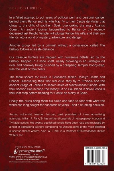 The Templar Legacy (a.k.a. Carpe Diem) In a failed attempt to put years of political peril and personal danger behind them, Rance and his wife Mac fly to their Castle de Molay that clings to the cliffs of southern Spain overlooking the angry Atlantic Ocean. An ancient journal bequeathed to Rance by the recently deceased last Knight Templar will plunge Rance, his wife, and their two friends into a world of mystery, adventure, and danger.Another group, led by a criminal without a conscience, called The Bishop, follows at a safe distance.Our treasure hunters are plagued with numerous pitfalls…mehr
