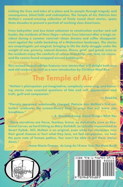 Linking the lives and tales of a place and its people through tragedy and consequence, blind faith and redemption, The Temple of Air, Patricia Ann McNair’s award-winning collection of finely tuned short stories, spans three decades to present a portrait of working class Americans. From babysitter and bus ticket salesman to construction worker and cult leader, the residents of New Hope—whose lives intersect after a tragic accident during a summer carnival—chase dreams and suffer disappointment against the subtle backdrop of a Midwestern landscape. The stories are unapologetic yet magical, bringing to life the daily struggle under the weight of war, poverty, natural disaster, illness, grief, and greed, even as the residents enjoy the comforts of solace, friendship, sex, love, ice cream, and the comics found wrapped around bubblegum. This revised second edition features new stories that will delight both new and old readers, as well as a new introduction.