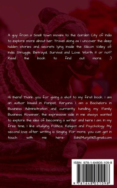 A guy from a Small town moves to the Garden City of India to explore more about her. Travel along as I uncover the deep hidden stories and secrets lying inside the Silicon Valley of India. Struggle, Betrayal, Survival and Love. Worth it or not? Read the book to find out more. ;)