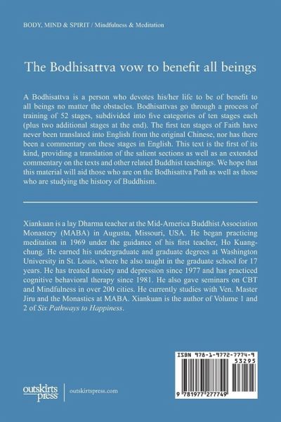 A Bodhisattva is a person who devotes his/her life to be of benefit to all beings no matter the obstacles. Bodhisattvas go through a process of training of 52 stages, subdivided into five categories of ten stages each (plus two additional stages at the end). The first ten stages of Faith have never been translated into English from the original Chinese, nor has there been a commentary on these stages in English. This text is the first of its kind, providing a translation of the salient sections as well as an extended commentary on the texts and other related Buddhist teachings. We hope that this material will aid those who are on the Bodhisattva Path as well as those who are studying the history of Buddhism.