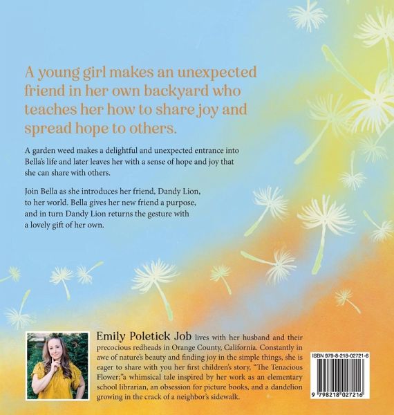 A garden weed makes a delightful and unexpected entrance into Bella's life and later leaves her with a sense of hope and joy that she can share with others. Join Bella as she introduces her friend, Dandy Lion, to her world. Bella gives her new friend a purpose, and in turn Dandy Lion returns the gesture with a lovely gift of her own.