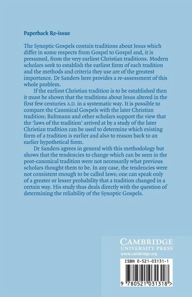 The Synoptic Gospels contain traditions about Jesus which differ in some respects from Gospel to Gospel and, it is presumed, from the very earliest Christian traditions. Scholars often seek to establish the earliest form of each tradition and the methods and criteria they use are of the greatest importance. Dr Sanders here provides a reassessment of this whole problem. His study deals directly with the question of determining the reliability of the Synoptic Gospels.