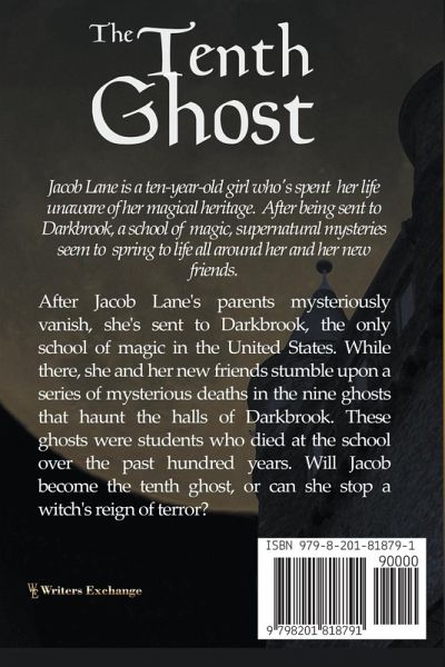 Jacob Lane is a ten-year-old girl who's spent her life unaware of her magical heritage. After being sent to Darkbrook, a school of magic, supernatural mysteries seem to spring to life all around her and her new friends. After Jacob Lane's parents mysteriously vanish, she's sent to Darkbrook, the only school of magic in the United States. While there, she and her new friends stumble upon a series of mysterious deaths in the nine ghosts that haunt the halls of Darkbrook. These ghosts were students who died at the school over the past hundred years. Will Jacob become the tenth ghost, or can she stop a witch's reign of terror?