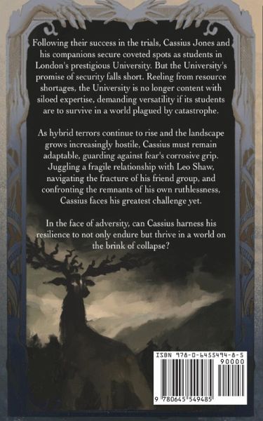 Following their success in the trials, Cassius Jones and his companions secure coveted spots as students in London's prestigious University. But the University's promise of security falls short. Reeling from resource shortages, the University is no longer content with siloed expertise, demanding versatility if its students are to survive in a world plagued by catastrophe. As hybrid terrors continue to rise and the landscape grows increasingly hostile, Cassius must remain adaptable, guarding against fear's corrosive grip. Juggling a fragile relationship with Leo Shaw, navigating the fracture of his friend group, and confronting the remnants of his own ruthlessness, Cassius faces his greatest challenge yet. In the face of adversity, can Cassius harness his resilience to not only endure but thrive in a world on the brink of collapse?