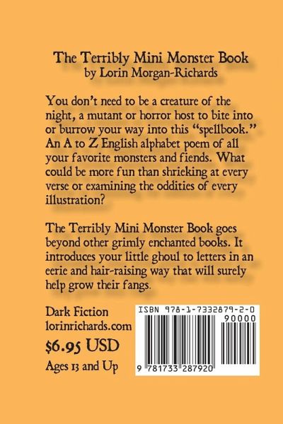 The Terribly Mini Monster Book by Lorin Morgan-Richards You don't need to be a creature of the night, a mutant or horror host to bite into or burrow your way into this "spellbook." An A to Z English alphabet poem of all your favorite monsters and fiends.