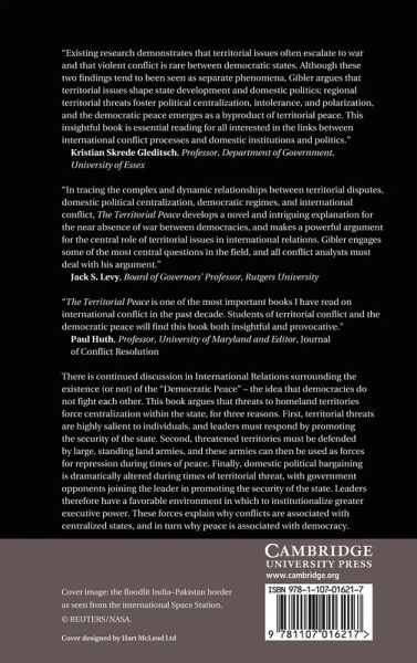 There is continued discussion in International Relations surrounding the existence (or not) of the 'democratic peace' - the idea that democracies do not fight each other. This book argues that threats to homeland territories force centralization within the state, for three reasons. First, territorial threats are highly salient to individuals, and leaders must respond by promoting the security of the state. Second, threatened territories must be defended by large, standing land armies and these armies can then be used as forces for repression during times of peace. Finally, domestic political bargaining is dramatically altered during times of territorial threat, with government opponents joining the leader in promoting the security of the state. Leaders therefore have a favorable environment in which to institutionalize greater executive power. These forces explain why conflicts are associated with centralized states, and in turn why peace is associated with democracy.