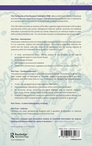 The Territories of the Russian Federation 2009 offers a diverse collection of political and economic information on the Russian Federation and its constituent units.