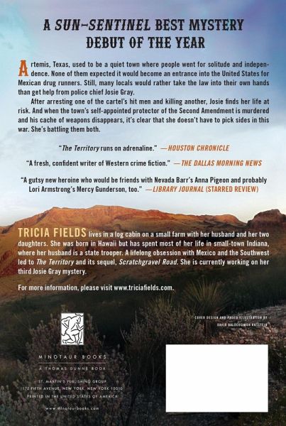 At the end of State Road 170 lies Artemis, population 2500. The townspeople had sought out this remote corner of western Texas in hopes of living lives of solitude and independence. None of them realized that their small town would become a hot spot for Mexican drugrunners, whose turf battles have turned both sides of the Rio Grande into a war zone. Still, many of the locals would rather take the law into their own hands than get help from police chief Josie Gray, even when they're up against a cartel's private army. After arresting one of the cartel's hitmen and killing another, Josie finds her own life at risk for doing a job which many people would rather see her quit. And when the town's self-appointed protector of the Second Amendment is murdered, it's clear that she doesn't have to pick sides in this war. She's battling them both. Set in a desert landscape as beautiful as it is dangerous, Tricia Fields' The Territory, winner of the 2010 Tony Hillerman Prize and named a Sun-Sentinel Best Mystery Debut of the Year, captures the current border issues from the eyes of a tough, compelling heroine.