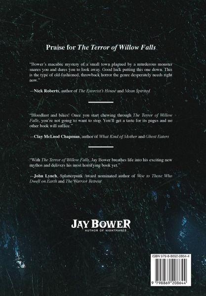 Welcome to Willow Falls-Where Small Town Terror Awaits Thirteen-year-old Joey Speight's life is turned upside down when his family moves from Chicago to the sleepy river town of Willow Falls to live with his mysterious great-grandmother, Ruth. Relocating to a new town is tough enough, but the whispers of a horrifying creature called the Eyebiter that feasts on the eyes of its victims make Joey question the safety of his new home. Along with his new friend Len, Joey digs into the town's dark past. He uncovers a chilling history drenched in blood, dating back centuries. A cryptic journal from his great-grandmother's family reveals connections to the town's origins and Joey must face his fears to embrace a destiny he never wanted. Can he survive the terror of Willow Falls and defeat the Eyebiter, or will he become another victim of its insatiable hunger? Fans of atmospheric horror, gruesome folklore, and relentless suspense won't want to miss The Terror of Willow Falls.