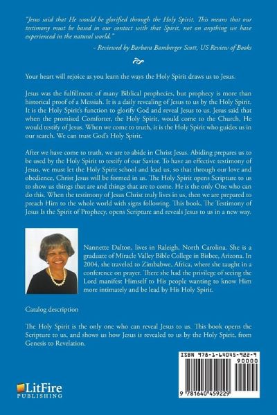 Your heart will rejoice as you learn the ways the Holy Spirit draws us to Jesus. Jesus was the fulfillment of many Biblical prophecies, but prophecy is more than historical proof of a Messiah. It is a daily revealing of Jesus to us by the Holy Spirit. It is the Holy Spirit’s function to glorify God and reveal Jesus to us. Jesus said that when the promised Comforter, the Holy Spirit, would come to the Church, He would testify of Jesus. When we come to truth, it is the Holy Spirit who guides us in our search. We can trust God’s Holy Spirit. After we have come to truth, we are to abide in Christ Jesus. Abiding prepares us to be used by the Holy Spirit to testify of our Savior. To have an effective testimony of Jesus, we must let the Holy Spirit school and lead us, so that through our love and obedience, Christ Jesus will be formed in us. The Holy Spirit opens Scripture to us to show us things that are and things that are to come. He is the only One who can do this. When the testimony of Jesus Christ truly lives in us, then we are prepared to preach Him to the whole world with signs following. This book, The Testimony of Jesus Is the Spirit of Prophecy, opens Scripture and reveals Jesus to us in a new way.