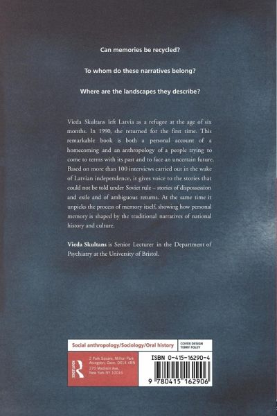 Vieda Skultans left Latvia as a refugee at the age of six months. In 1990, she returned for the first time. This text is both a personal account of a homecoming and an anthropology of a people trying to come to terms with its past and to face an uncertain future. Based on more than 100 interviews carried out in the wake of Latvian independence, it gives voice to stories of dispossession and exile and of ambiguous returns. At the same time it unpicks the process of memory itself, showing how personal memory is shaped by the traditional narratives of national history and culture.