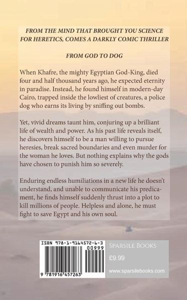 FROM GOD TO DOG From the mind that brought you Science for Heretics, comes a darkly comic thriller When Khafre, the mighty Egyptian God-King, died four and a half thousand years ago, he expected an eternity in paradise. Instead, he found himself in modern-day Cairo, trapped inside the lowliest of creatures, a police dog who earns its living by sniffing out bombs. Yet, nightly, vivid dreams taunt him, conjuring up a brilliant life of wealth and power. As his past life reveals itself, he discovers himself to have been a man willing to pursue heresies, break sacred boundaries and even murder for the woman he loves. But nothing in these memories explains why the gods have chosen to punish him so severely. Enduring endless humiliations in a new life he doesn't understand, and unable to communicate his predicament, he finds himself suddenly thrust into a plot to kill millions of people. Helpless and alone, he must fight to save Egypt and his own soul.