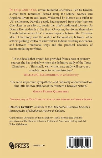 Volume 203 in The Civilization of the American Indian Series. In 1819 to 1820 several hundred Cherokees-led by Duwali, a chief from Tennessee-settled along the Sabine, Neches, and Angelina rivers in east Texas. Welcomed by Mexico as a buffer to U.S. settlement, Duwali's people had separated from other Western Cherokees in an effort to retain the tribe's traditional lifeways. As Dianne Everett details in The Texas Cherokees, they found themselves "caught between two fires" in many respects: between the Cherokee ideal of harmony and the reality of factionalism, between white settlers pushing westward and western Indians resisting incursions, and between traditional ways and the practical necessity of accommodating to whites. Dianna Everett holds the doctorate in history from Texas Tech University.