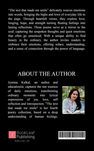 "The text that made me smile" is a collection of 21 exuberant poems spreading the raw essence of daily emotions. Each poem serves as a snapshot of a moment, a feeling, or a perspective using simple words and rhythm to evoke deep emotions in the reader.