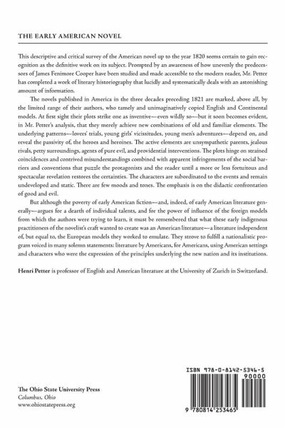 This descriptive and critical survey of the American novel up to the year 1820 seems certain to gain recognition as the definitive work on its subject. Prompted by an awareness of how unevenly the predecessors of James Fenimore Cooper have been studied and made accessible to the modern reader, Mr. Petter has completed a work of literary historiography that lucidly and systematically deals with an astonishing amount of information. The novels published in America in the three decades preceding 1821 are marked, above all, by the limited range of their authors, who tamely and unimaginatively copied English and Continental models. At first sight their plots strike one as inventive-even wildly so-but it soon becomes evident, in Mr. Petter's analysis, that they merely achieve new combinations of old and familiar elements. The underlying patterns-lovers' trials, young girls' vicissitudes, young men's adventures-depend on, and reveal the passivity of, the heroes and heroines. The active elements are unsympathetic parents, jealous rivals, petty surroundings, agents of pure evil, and providential interventions. The plots hinge on strained coincidences and contrived misunderstandings combined with apparent infringements of the social barriers and conventions that puzzle the protagonists and the reader until a more or less fortuitous and spectacular revelation restores the certainties. The characters are subordinated to the events and remain undeveloped and static. There are few moods and tones. The emphasis is on the didactic confrontation of good and evil. Henri Petter is professor of English and American literature at the University of Zurich in Switzerland.