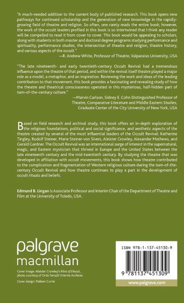 "The Theatre of the Occult Revival provides a thorough and engaging review of the relationship between new religious movements and the dramatic theatre since the late nineteenth century. While the primary audience for the book is clearly scholars and students of theatre and religion, the insights that Lingan provides into the relationship among these movements and the Symbolist theatre make the book a significant contribution to the general study of late-nineteenth- and early-twentieth-century theatre." (Kurt Taroff, Theatre Journal, Vol. 68 (1), March, 2016)