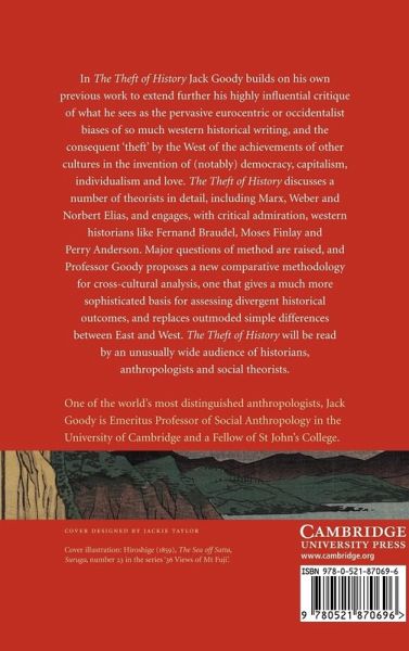 Professor Jack Goody builds on his own previous work to extend further his highly influential critique of what he sees as the pervasive eurocentric or occidentalist biases of so much western historical writing. Goody also examines the consequent 'theft' by the West of the achievements of other cultures in the invention of (notably) democracy, capitalism, individualism, and love. The Theft of History discusses a number of theorists in detail, including Marx, Weber and Norbert Elias, and engages with critical admiration western historians like Fernand Braudel, Moses Finlay and Perry Anderson. Major questions of method are raised, and Goody proposes a new comparative methodology for cross-cultural analysis, one that gives a much more sophisticated basis for assessing divergent historical outcomes, and replaces outmoded simple differences between East and West. The Theft of History will be read by an unusually wide audience of historians, anthropologists and social theorists.