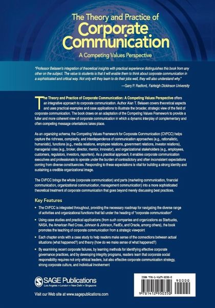 "It provides an integrated an broad perspective for addressing the diversity of corporate communications as a field of study and a community of practice. As an organizing scheme it helps capture the richness, complexity and interdependence of communication theories." -BUSINESS INDIA "Professor Belasen's integration of theoretical insights with practical experience distinguishes this book from any other on the subject. The value to students is that it will enable them to think about corporate communication in a sophisticated and critical way. Not only will they learn to do their jobs well, they will also understand why." -Gary P. Radford, Fairleigh Dickinson University The Theory and Practice of Corporate Communication: A Competing Values Perspective offers an integrative approach to corporate communication. Author Alan T. Belasen covers theoretical aspects and uses practical examples and case applications to illustrate the broader, strategic view of the field of corporate communication. The book draws on an adaptation of the Competing Values Framework to provide a fuller and more coherent view of corporate communication in which a dynamic interplay of complementary and often competing message orientations takes place. As an organizing schema, the Competing Values Framework for Corporate Communication (CVFCC) helps capture the richness, complexity, and interdependence of communication approaches (e.g., rationalistic, humanistic), functions (e.g., media relations, employee relations, government relations, investor relations), managerial roles (e.g., broker, director, mentor, innovator), and organizational stakeholders (e.g., employees, customers, regulators, investors, reporters). As a practical approach, it enables corporate communication executives and professionals to operate under the burden of contradictory and often inconsistent expectations coming from diverse constituencies. Responding to these expectations is vital for building a strong identity and sustaining a credible organizational image. The CVFCC brings the whole (corporate communication) and parts (marketing communication, financial communication, organizational communication, management communication) into a more sophisticated theoretical treatment of corporate communication that goes beyond merely discussing "best practices." Key Features · The CVFCC is integrated throughout, providing the necessary roadmap for navigating the diverse range of activities and organizational functions that fall under the heading of "corporate communication" · Using case studies and practical applications (from such companies and organizations as Starbucks, NASA, the American Red Cross, Johnson & Johnson, FedEx, and Oracle, among others), the book promotes the teaching of corporate communication from a strategic viewpoint · Each chapter ends with a case study to help readers make sense of the connections between actual situations (what happened?) and theory (how do we make sense of what happened?) · By examining recent corporate failures, learning methods for identifying effective corporate governance practices, and developing integrity programs, readers learn that corporate social responsibility requires not only ethical leaders, but also effective corporate communication strategy, strong corporate culture, and individual involvement