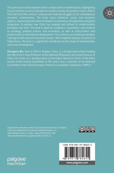 This open access book explores China's unique path to modernization, highlighting its journey from ancient civilization to modern society. It examines China's efforts from the mid-19th century's internal and external struggles to its contemporary economic achievements. The book covers historical, social, and economic aspects, emphasizing the balance between autonomous development and global integration. It explains how China has adapted and refined its modernization principles over time. The book is ideal for academics, researchers, and students in sociology, political science, and economics, as well as policymakers and professionals in international development. The content is accessible yet detailed, catering to both new and seasoned scholars. With insightful analysis and practical implications, the book is a significant contribution to the study of modernization and social development.