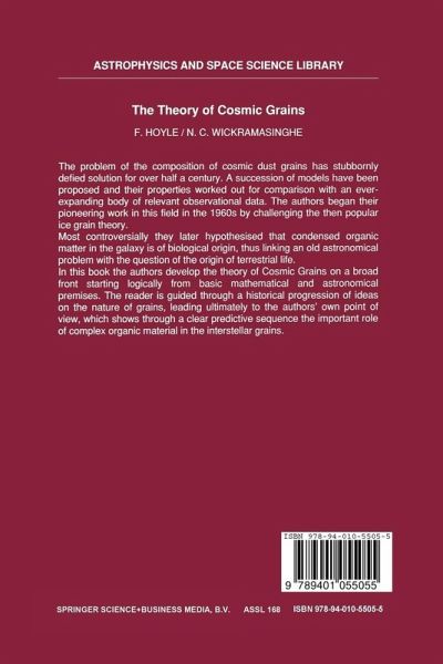 1. Introduction.- 1.1. Early Ideas.- 1.2. Trumpler's Method of Estimating Interstellar Extinction.- 1.3. The First Colour Measurements.- 1.4. The Oort Limit.- 1.5. Data Relating to Interstellar Clouds.- 1.6. Correlation Between Gas and Dust Clouds.- 1.7. Composition of Grains.- 2. Electromagnetic Properties of Small Particles.- 2.1. Homogeneous Spherical Particles.- 2.2. Composite Spheres.- 2.3. Infinite Cylinders.- 2.4. Rayleigh Scattering by Ellipsiods.- 2.5. Heterogeneous or Porous Grains.- 2.6. Absorption Cross-sections, Bulk Absorption Coefficient and Emissivity.- 2.7. Two Special Cases.- 3. Interstellar Extinction and Polarisation.- 3.1. Equation of Transfer.- 3.2. Observations of Interstellar Extinction, Definition of Colour Indices and Colour Excesses.- 3.3. Observations of Interstellar Polarisation.- 3.4. Diffuse Interstellar Bands.- 4. Reflection Nebulae and the Diffuse Galactic Light.- 4.1. Introductory Remarks.- 4.2. Apparent Size of Reflection Nebulae.- 4.3. Observations of NGC 7023.- 4.4. Observations of Reflection Nebula Around Merope.- 4.5. Multiple Scattering Models of Reflection Nebulae.- 4.6. Diffuse Galactic Light.- 5 Interactions between Dust, Gas and Radiation.- 5.1.Introductory Remarks.- 5.2. Grain Temperatures for Sandard Grains.- 5.3.Temperature Spikes in Very Small Grains.- 5.4.Electrostatic Gharge on Grains.- 5.5.Rotation of Grains.- 5.6.Radio Waves from Grains.- 5.7.Molecule Formation.- 5.8. Growth and Destruction of Grains.- 5.9. Effects of Radiation Pressure.- 5.10. Gyration About the Magnetic Field.- 5.11. Alignment of Grains.- 5.12. Depletion of Elements from the Gas Phase.- 6. Inorganic Theories of Grain Formation.- 6.1. Interstellar Condensation.- 6.2. Condensation of Graphite Grains.- 6.3. Condensation of Grains in CoolOxygen-rich Giant Stars.- 6.4. Core-mantle Grains.- 7. The Organic Grain Model.- 7.1. Introductory Remarks.- 7.2. Polymerisation of Formaldehyde.- 7.3. From Formaldehyde to Polysacharides.- 7.4. Polysacharide Formation in Stellar Mass Flows.- 7.5. HAC, PAH and QCC Models.- 7.6. Fischer Tropsch Reactions in the Gas Phase.- 7.7. The Biological Grain Model.- 8. Models of the Extinction and Polarisation of Starlight.- 8.1. Introduction.- 8.2. The Visual Extinction Curve.- 8.3. The Ultraviolet Extinction Curve: Extinction Curves for Graphite Grains.- 8.4. Polarisation Constraints.- 8.5. An Organic/Biologic Grain Model.- 8.6. Analysis of a Biological Grain Model.- 8.7. Refinements to Biological Extinction Model.- 9. Spectroscopic Identifications.- 9.1. Introduction.- 9.2. The 8 - 13µm Features in Astronomy.- 9.3. The 8 - 40µm Flux from the Trapezium Nebula.- 9.4. The 3.4µm Band: Proof that Grains are Mainly Organic.- 9.5. Modelling the 2.9 - 4µm IR Data for GC-IRS7.- 9.6. How Much Water - Ice?.- 9.7. Sources with Spectra in the 2 - 14µm Waveband.- 9.8. Evidence for PAH.- 9.9. Aromatic Molecules and the Diffuse Optical Bands.- 10. Dust in External Galaxies.- 10.1. Introduction.- 10.2. The Magellanic Clouds: LMC and SMC.- 10.3. M82 and Other Galaxies.- 10.4. Particles of High Infrared Emissivity.- 10.5. The Ejection of Iron Whiskers from Galaxies.- 10.6. The Microwave Background.