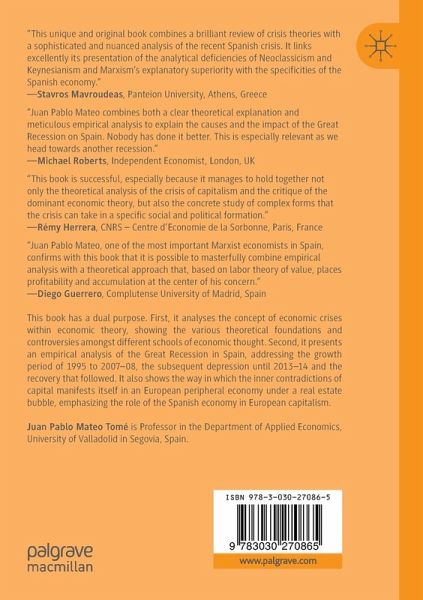 1.Introduction: The Political Economy of the Spanish Crisis.- Part I: Foundations of the Theory of Crisis in the Economic Thought.- 2.The Materialist Conception of the Crisis.- 3.Advancing in the Theory of Crisis: Social, Temporal and Geographical Dynamics.- 4.Conventional Economics and the Theories of the Possibility of Crisis.- Part II: A Crisis of Capital Valorization: Profitability, Asset-Inflation and the Composition of Capital.- 5.The Fall in Profitability Underlying the Great Recession.- 6.Construction and the Housing Boom. Analyzing the Price-Effect From The Law of Value.- 7.Why Does Profitability Fall? Paradoxes of Capital Composition and Labour Productivity.- Part III: Controversies Around the Crisis: Why it Happened, What Should Be Done.- 8.This Time It Was Also The Same: Accumulation of Imbalances and Human Failures.- 9.Labor Market, Wages and Crisis.- 10. Financialization and Crisis: From Low Interest Rates to a Credit Boom and Over-Indebtedness.- 11.The Way Out Of Crises. From Diagnosis to a Programme of Economic Policy.- 12.Conclusions.