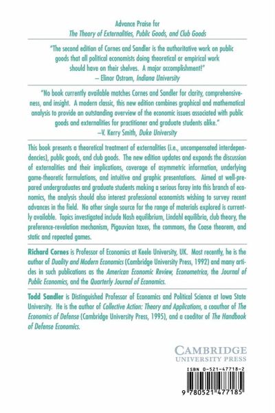 This book presents an updated and expanded discussion of theoretical treatment of externalities (i.e. uncompensated interdependencies), public goods, and club goods.