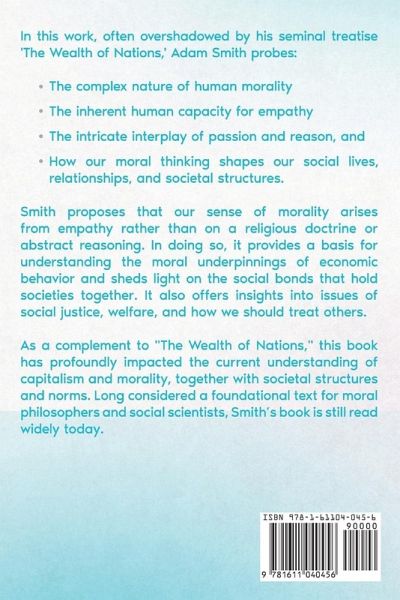 In this work, often overshadowed by his seminal treatise 'The Wealth of Nations,' Adam Smith probes:The complex nature of human morality The inherent human capacity for empathy The intricate interplay of passion and reason, and How our moral thinking shapes our social lives, relationships, and societal structures. Smith proposes that our sense of morality arises from empathy rather than on a religious doctrine or abstract reasoning. In doing so, it provides a basis for understanding the moral underpinnings of economic behavior and sheds light on the social bonds that hold societies together. It also offers insights into issues of social justice, welfare, and how we should treat others. As a complement to "The Wealth of Nations," this book has profoundly impacted the current understanding of capitalism and morality, together with societal structures and norms. Long considered a foundational text for moral philosophers and social scientists, Smith's book is still read widely today.