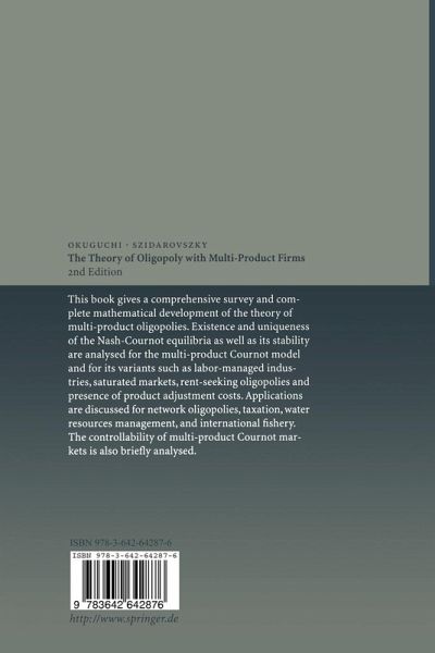 In the mid 1960's both authors undertook independent works in oligopoly.and game theory. However, it was not until 1983 that they formally met. Since then, they have continued meeting either in Budapest or Tokyo. Their collaboration has resulted in numerous publications as well as in this work. Essentially, this book has two origins. First, it originated in previous results, either published or circulated in mimeograph form. Finely sifting their results, the authors constructed a concise reinterpretation of their achievement to date. However, this unifying process led to the second origin. Reconsideration, particularly in this comprehensive approach, generated new results. This was especially true in the analysis of the existence, uniqueness and global stability of the Cournot-Nash equilibrium for oligopoly with multi-product flrms, and for several modilled Cournot and related models. This book should be ideal for graduate students in economics or mathematics. However, as the authors have firmly grounded their ideas in the formal language of mathematics, the student should possess some background in calculus, linear algebra, and ordinary differential and difference equations. Additionally, the book should be useful to researchers in oligopoly and game theory as well as to mathematically oriented economists. The methodology developed for analyzing the existence and stability of oligopoly equilibrium should prove useful also in theoretical analysis of other economic models. Weare both very grateful to Professor Wilhelm Krelle for his careful review and helpful suggestions. In addition, Koji Okuguchi wishes to thank Professors W.