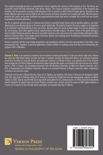 This original monograph presents a comprehensive theory regarding the economy of the kingdom of God. The theory and associated model will help individuals make better choices. The research integrates fundamentals of the temporal real economy, and the permanent economy of the kingdom of God, to present a unified model of human agency. According to the model, effective agents are salt and light in the real economy, arresting corruption and revealing the truth. Effective agency produces life, peace, and growth. Individual and organizational practices that arrest corruption and reveal truth can resolve longstanding economic grievances. The list of spiritual credence goods is extensive and includes commonly known virtues such as humility, patience, and hope. Spiritual goods are allocated based on the owner-agent relationship. The quantity of goods the owner supplies is in proportion to an individual's sacrificial offering of time and money. Spiritual goods are stored as heart capital. In a process analogous to the real economy, heart labor applied to heart capital produces desirable outputs. The owner relates to his agents through a heart-inscribed behavioral contract. The owner generally intervenes in the real economy by communicating with agents rather than by restricting choice. Prior studies across economics, finance, and sociology prove the efficiency of behavioral contracts and communication over restricted choice. Herein researchers will find new testable propositions, and practitioners will find new ideas and practices to live better, more consequential lives. Examples of practical applications include methods of resolving group-level bias and understanding the purpose of life's difficulties.