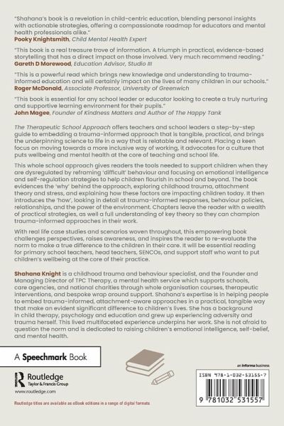 The Therapeutic School Approach offers teachers and school leaders a step-by-step guide to embedding a trauma-informed approach that is tangible, practical, and brings the underpinning science to life in a way that is relatable and relevant. Placing a keen focus on moving towards a more inclusive way of working, it advocates for a culture that puts wellbeing and mental health at the core of teaching and school life.