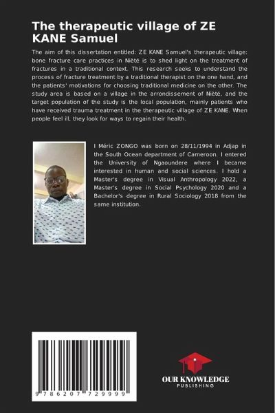 The aim of this dissertation entitled: ZE KANE Samuel's therapeutic village: bone fracture care practices in Nièté is to shed light on the treatment of fractures in a traditional context. This research seeks to understand the process of fracture treatment by a traditional therapist on the one hand, and the patients' motivations for choosing traditional medicine on the other. The study area is based on a village in the arrondissement of Nièté, and the target population of the study is the local population, mainly patients who have received trauma treatment in the therapeutic village of ZE KANE. When people feel ill, they look for ways to regain their health.
