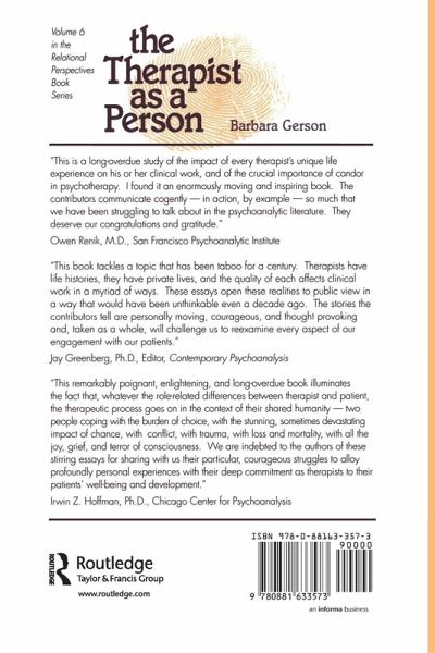 In this collection of powerfully illuminating and often poignant essays, contributors candidly discuss the impact of central life crises and identity concerns on their work as therapists. With chapters focusing on identity concerns associated with the body-self (body size, ethnicity, sexual orientation, and age), urgent life crises, and defining life circumstances, The Therapist as a Person exemplifies the myriad ways in which the therapist's subjectivity shapes his or her interaction with patients. Included in the collection are life events rarely if ever dealt with in the literature: the death of family members, late pregnancy loss, divorce, the failure of the therapist's own therapy, infertility and childlessness, the decision to adopt a child, and the parenting of a profoundly deaf child.
