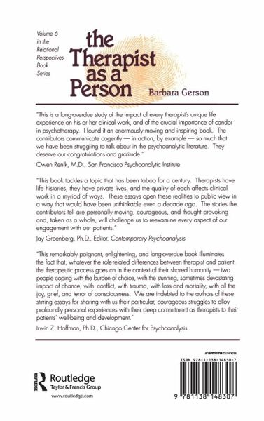 With chapters focusing on identity concerns associated with body-self (body size, ethnicity, sexual orientation, and age), urgent life crises, and defining life circumstances, The Therapist as a Person exemplifies the myriad ways in which the ther