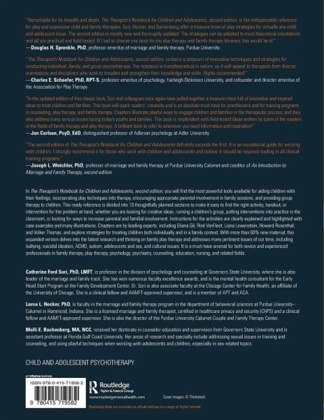 In The Therapist's Notebook for Children and Adolescents, 2nd ed, you'll find the most powerful tools available for aiding children with their feelings, incorporating play techniques into therapy, providing group therapy to children, and encouraging appropriate parental involvement.
