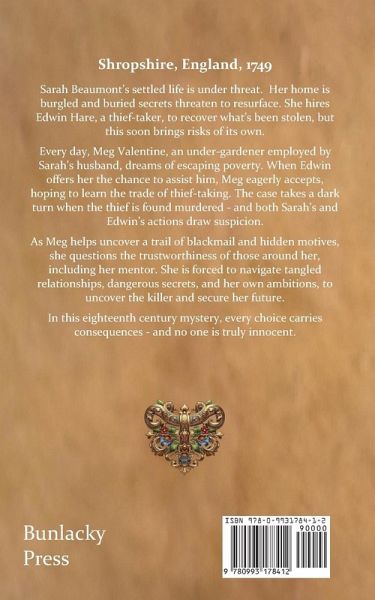 Shropshire, England, 1749 Sarah Beaumont's settled life is under threat. Her home is burgled and buried secrets threaten to resurface. She hires Edwin Hare, a thief-taker, to recover what's been stolen, but won't reveal its nature. They find themselves drawn to each other, despite the risk this poses. Meg Valentine, an under-gardener employed by Sarah's husband, dreams of escaping poverty. When Edwin offers her the chance to assist him, Meg eagerly accepts, hoping to learn the trade of thief-taking. But the case takes a dark turn when their thief is found murdered-and both Sarah and Edwin's actions draw suspicion. As Meg helps uncover a trail of blackmail and hidden motives, she questions the trustworthiness of those around her, including her mentor. Determined to find the truth, Meg must navigate tangled relationships, dangerous secrets, and her own ambitions, to uncover the killer and secure her future. In this 18th century mystery, every choice carries consequences-and no one is truly innocent. From the author of the Inspector James Given series, this mid-Georgian mystery will appeal to readers of Andrew Taylor and C J Sansom.