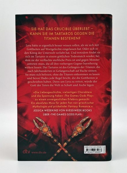 Lyra hätte es eigentlich besser wissen sollen, als sie sich mit Gottheiten auf Wortgefechte eingelassen hat. Oder sich in den König der Unterwelt verliebt hat. Und trotzdem findet sie sich im Tartaros in einem göttlichen Todesmatch wieder, bei dem sie der verfluchte sterbliche Preis ist und gegen Monster antreten muss, die all ihre vorherigen Gegner barmherzig wirken lassen. Der Tartaros ist das Gefängnis der Titanen, die nach Jahrhunderten in Gefangenschaft auf Rache sinnen. Sie muss sich befreien, ohne die Titanen entkommen zu lassen und bevor Hades jede Regel bricht, die die Gottheiten je geschrieben haben. Denn um Lyra zu retten, würde der Gott der Toten die Welt in Schutt und Asche legen.