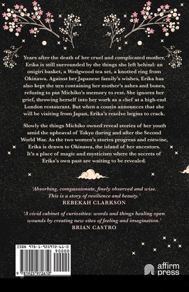 Years after the death of her cruel and complicated mother, Erika's house is still full of the things Michiko left behind: an onigiri basket, a Wedgewood tea set, a knotted ring from Okinawa. In defiance of Japanese tradition, Erika has also kept the urn containing Michiko's ashes, refusing to put her memory to rest. Erika throws herself into working as a chef at a high-end London restaurant and pretends everything is fine. But when a cousin announces that she will be visiting from Japan, Erika's resolve begins to crack. Slowly the things Michiko owned reveal stories of Michiko's youth amid the upheaval of Tokyo during and after the war. As the two women's stories progress and entwine, Erika is drawn to the island of Okinawa, the homeland of her grandmother. It's a place of magic and mysticism where the secrets of Erika's own past are waiting to be revealed. Beautiful and mysterious, THE THINGS SHE OWNED explores the complexity of lives lived between cultures, the weight of cross-generational trauma, and a mother and daughter on a tortuous path to forgiveness.